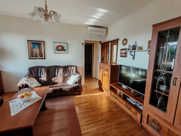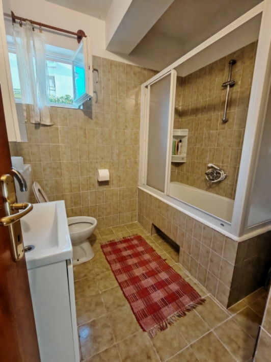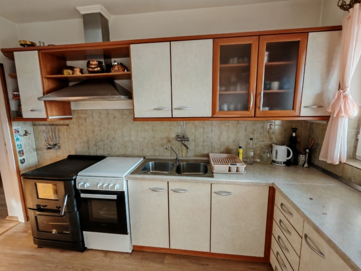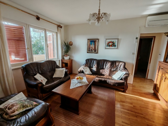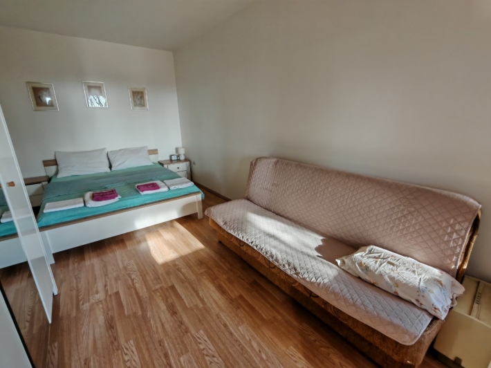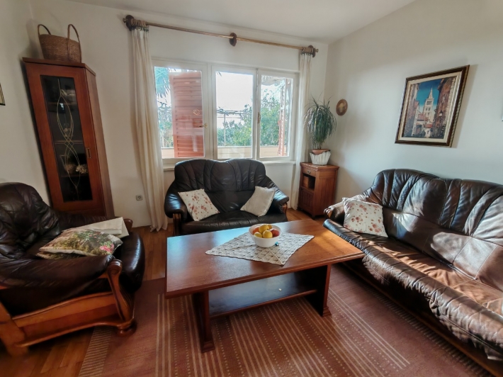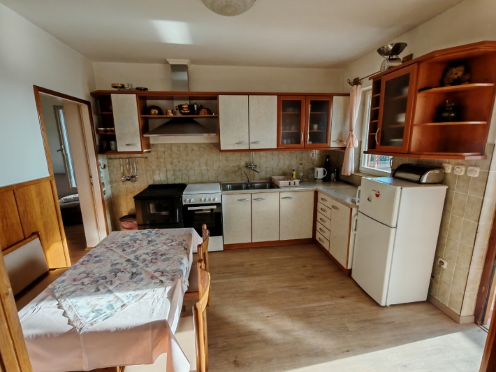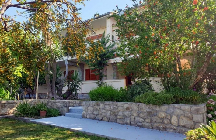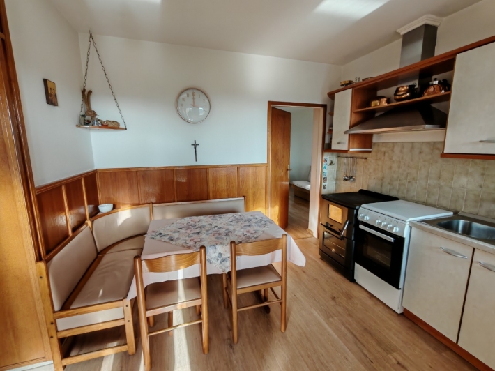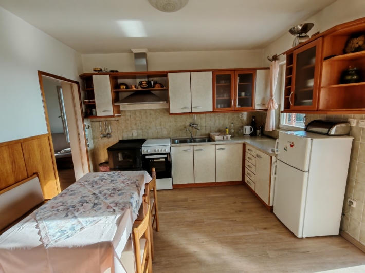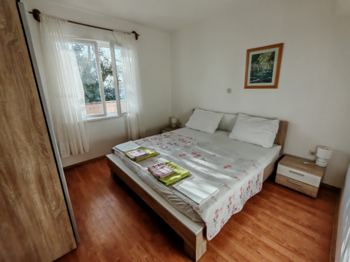 Description German: Diese Ferienwohnung für 4 bis 5 Personen befindet sich im Ort Banjol auf der Insel Rab. Die 70 qm grosse Unterkunft im Erdgeschoss des Hauses teilt sich in zwei Schlafzimmer, ein Badezimmmer so wie einen Ess-/Wohnbreich mit ausgestatteter Küche auf. Die überdachte Terrasse im Außenbereich lädt zum Verweilen ein. Der gemeinsame Grill befindet sich im Garten vor dem Haus. Der Badestrand im Autocamp PADOVA III ist nur 600m entfernt.