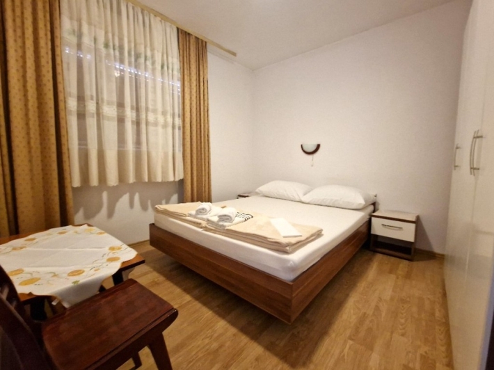 Description German: Diese schöne klimatisierte Ferienwohnung befindet sich im Urlaubsort Banjol auf der Insel Rab. Die FeWo ist über 64 qm groß und verfügt über 2 Schlaf- und 2 Badezimmer und liegt im 1. OG. Im Wohnraum befindet sich noch eine Schlafcouch für eine Person. Ein möblierter Balkon ist vorhanden. Eine gemeinsame Terrasse mit Grill steht zur Verfügung Der nächste Strand ist 350 m vom Haus entfernt.