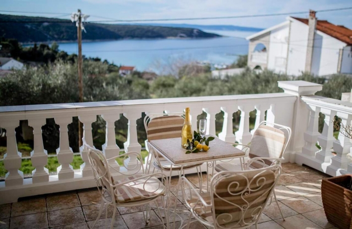 Description German: Diese 60 m² große Ferienwohnung für 2-4 Personen im Erdgeschoss des Hauses teilt sich in ein Schlafzimmer, ein Badezimmer und eine Küche mit Wohn/Essraum auf. Die Unterkunft verfügt über Sat-Tv und WLAN-Internet. Klimaanlage ist nicht vorhanden, aber es ist richtig angenehm im Haus da es ein renoviertes altes Steinhaus ist. Von der Terasse, die über den Wohnraum begehbar ist bietet sich ein fantastischer Blick auf das Meer und die Bucht von Kampor. Der Balkon ist überdacht und mit Tisch & Stühlen ausgestattet. Grillmöglichkeit ist auf dem Grundstück ebenfalls vorhanden. Ein Parkplatz für Ihren PKW steht Ihnen auf dem Grundstück zur Verfügung. Restaurants, Supermarkt und der Sandstrand Mel sind innerhalb weniger Gehminuten erreichbar.