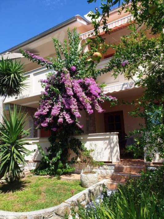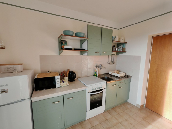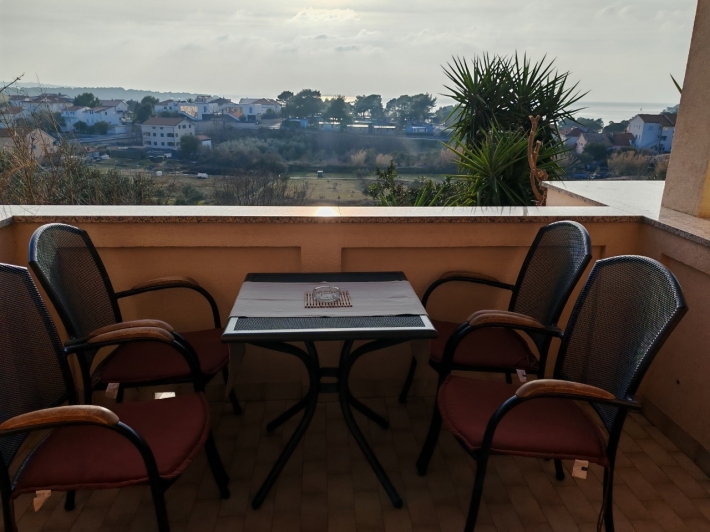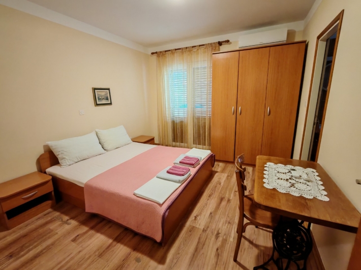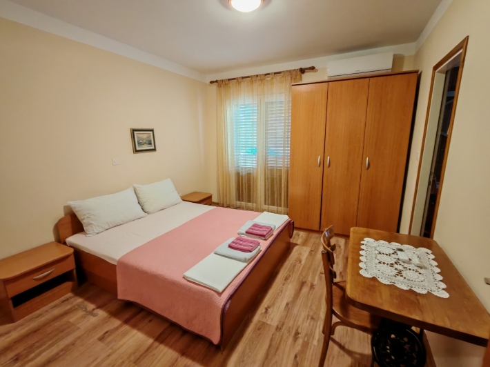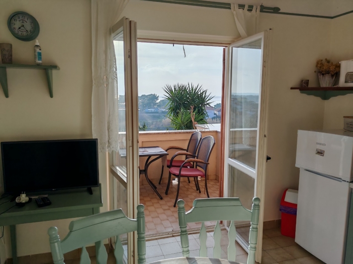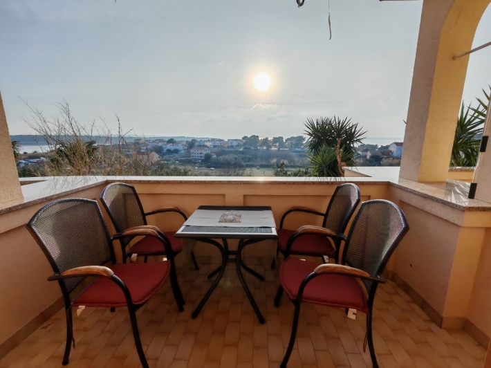 Description German: Diese Apartment für 4 bis 5 Personen befindet sich im Ort Banjol auf der Insel Rab. Die 50 qm grosse Unterkunft auf der 1.Etage des Hauses teilt sich in zwei Schlafzimmer, ein Badezimmmer so wie einer Küche mit Essbereich auf. Der überdachte Balkon mit Meerblick lädt zum Verweilen ein. Eine gemeinsame Terasse mit Grill befindet sich vor dem Haus im Garten. Der Badestrand im Autocamp PADOVA III ist nur 600m entfernt.